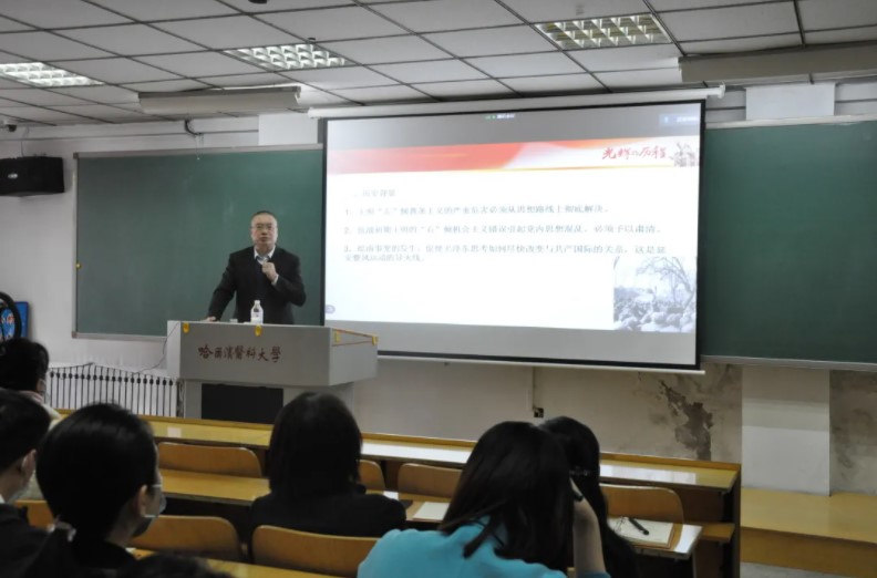 百年党史大讲堂从4月初开始,围绕党史专题开展每周一次的学习活动,学院领导、党支部书记、优秀学生党员等都会登上讲台,为全体师生讲述党史内容,分享心得感悟。4月2日下午,药学院“百年党史大讲堂”正式开讲,党委书记孙建平作为主讲人为系列讲座拉开序幕,本期党课主题为《延安整风》,全体职工、研究生和本科生代表到场聆听学习,并利用腾讯会议网络平台同步直播,党委副书记李霞主持讲座。