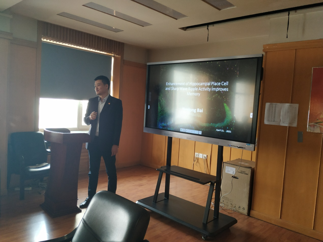 白云龙教授就记忆与认知电生理基础及改善认知障碍治疗策略进行了报告。并分享了其在美国的科研经历。白云龙教授当讲到很多科研设备并不适用于自己的实验,一些设备为自己动手改造时,也鼓励在场的学生要发挥自己的聪明才智,理论联系实际,自己动手改造出更适合自己实验的仪器设备。