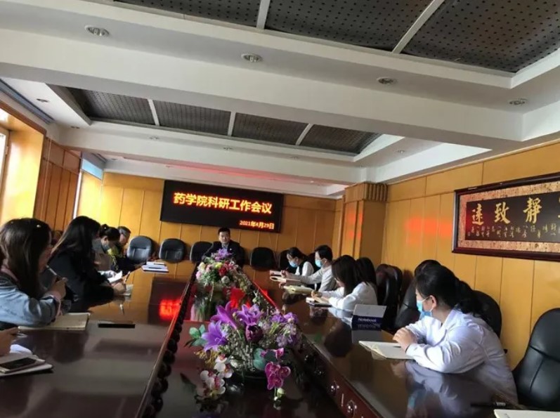 4月29日下午,药学院在7楼大会议室召开2021年第一次科研工作会议,各教研室主任及科研秘书到场参会,会议由白云龙副院长主持。