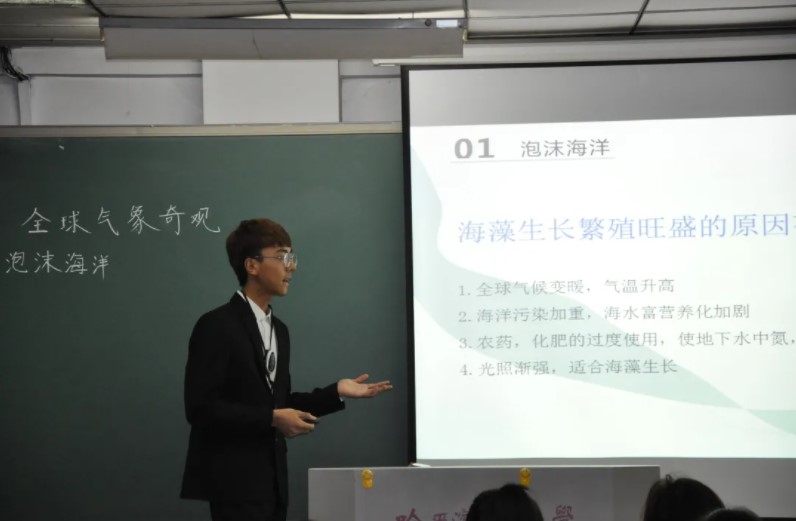 比赛伊始,2020级药学的石永威同学以“全球气象奇观”为题,从白色泡沫的海洋讲到震撼的蓝色冰川,带领大家领略大自然的鬼斧神工。他举止大方,逻辑清晰,语言流畅自然,赢得了大家热烈的掌声。