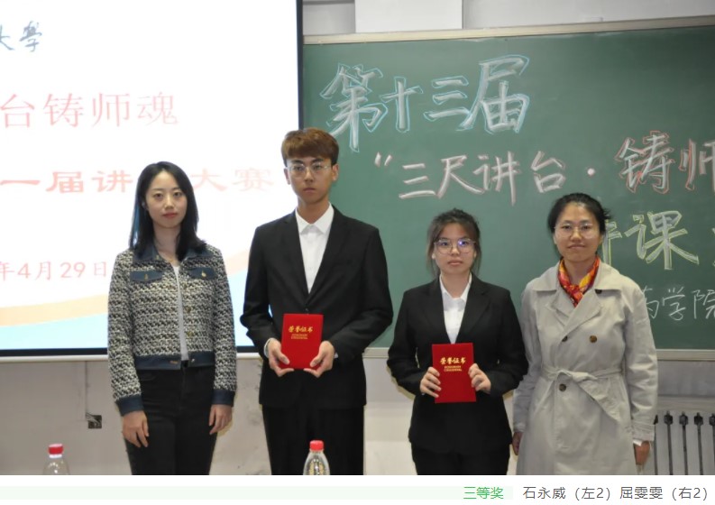 十年树木,百年树人,插柳之恩,终身难忘。各位选手经过一个月的精心准备,在提高自身讲课能力、展现自我风采的同时,也更加清楚地体会到教师准备教学的艰辛和不易。相信在今后的课堂中,同学们将以更加积极高昂的状态学习专业知识,努力成为“懂医精药、善研善成”的优秀学生,用优异的成绩向建党百年献礼。