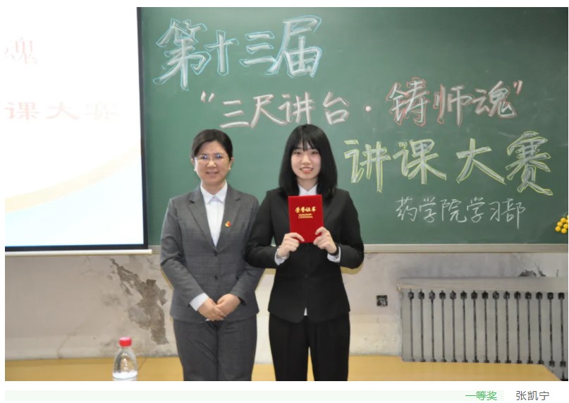 经过激烈的角逐,2020级药学的张凯宁同学凭借优秀的表现和独特的课堂表现力得到了全场最高分,获得本次比赛一等奖。