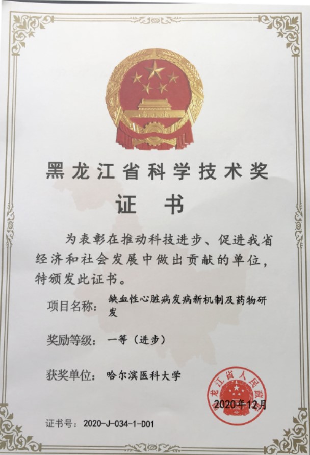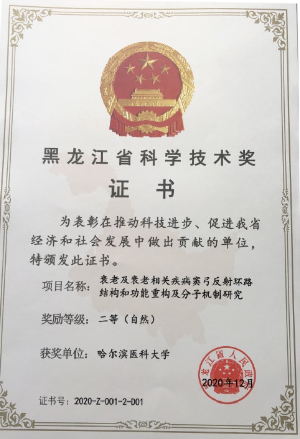 近日,黑龙江省政府发布2020年度黑龙江省科学技术奖励名单,我院杨宝峰院士团队“缺血性心脏病发病新机制及药物研发”获科技进步一等奖,艾静教授团队“衰老及衰老相关疾病窦弓反射环路结构和功能重构及分子机制研究”获自然科学二等奖,王金辉教授团队“经典名方和已上市中成药的药效物质基础和质量控制”获科技进步二等奖。