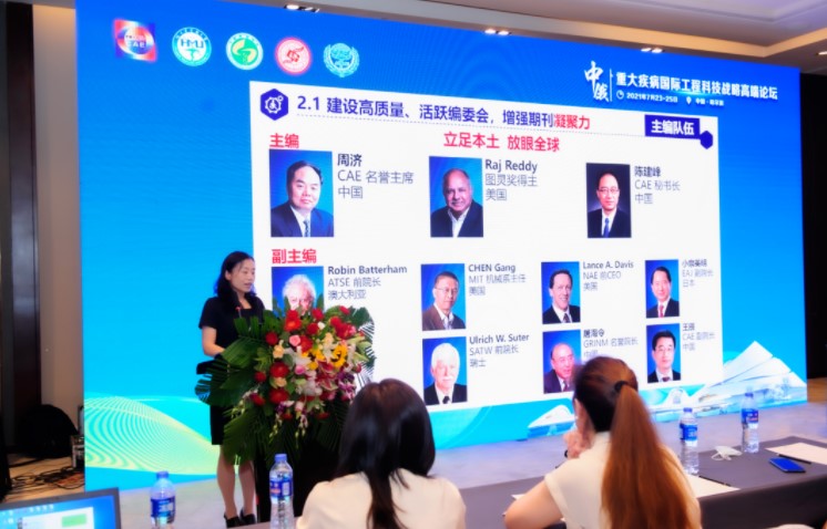 7月23日下午,“一带一路中国工程科技论坛”暨中国工程院院刊《Engineering》推介会召开,中国工程院院士、《Engineering》期刊医药卫生学科主编杨宝峰院士和《中国工程科学》杂志社社长、《Engineering》期刊执行副主编延建林出席会议并致辞,中国工程院学术与出版处处长、《Engineering》期刊执行副主编丁宁做《Engineering》期刊介绍,《Engineering》期刊执行副主编吴向总结发言。