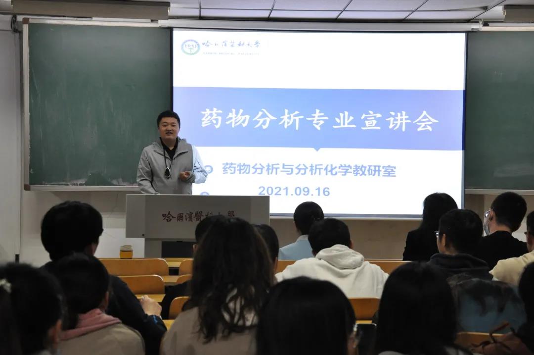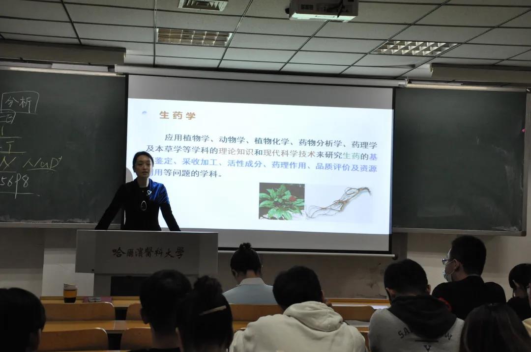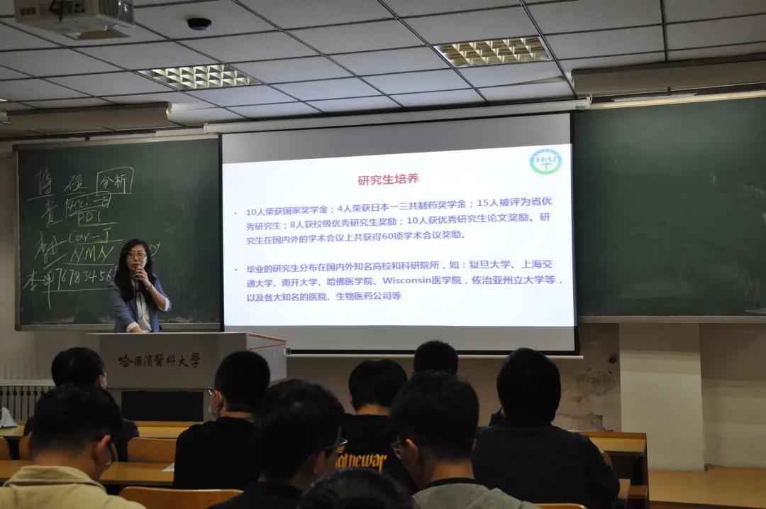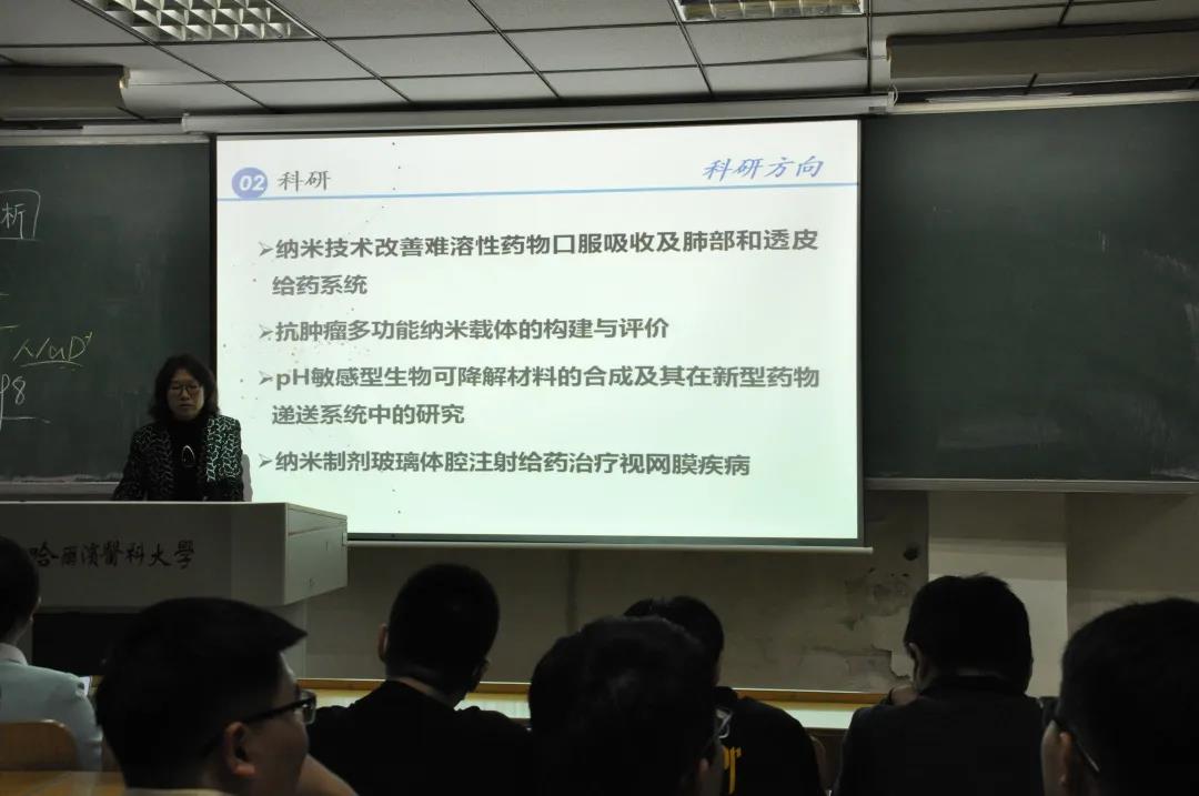 随后,药化教研室王金辉教授、药物分析教研室李洋教授、药剂学教研室唐景玲教授、生药学教研室姚丽教授、临床药学教研室赵丹教授、基因组中心刘慧迪副教授、生物制药教研室王爽副教授分别讲解不同专业的学科概况、实验室条件、科研方向、科研转化成果以及毕业生去向等内容。专家的讲座诙谐幽默,旁征博引,富有亲和力,老师叮嘱同学们从事科学研究要拓宽视野,从兴趣出发;要明晰就业去向与发展前景,立鸿鹄志,做奋斗者;要珍视母校读研机会,欢迎全体同学积极报考本校研究生,促进母校一流学科建设,助力龙江发展。