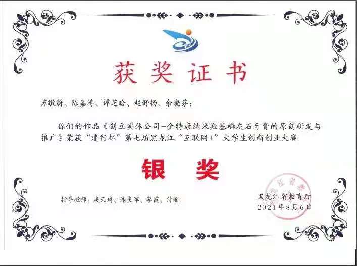药学院的师生们凭借赛前的充分准备和比赛期间的优秀表现,在此次大赛斩获了3项银奖,1项铜奖:《自然的馈赠——植物木脂素抗癌药物研发及绿色产业链》、《创立实体公司——金特康纳米羟基磷灰石牙膏的原创研发与推广》和《基因触角——新型抗老年性痴呆核酸药物》荣获大赛银奖,《“10”不可逢——新型冠状病毒快速检测试剂盒》荣获大赛铜奖。