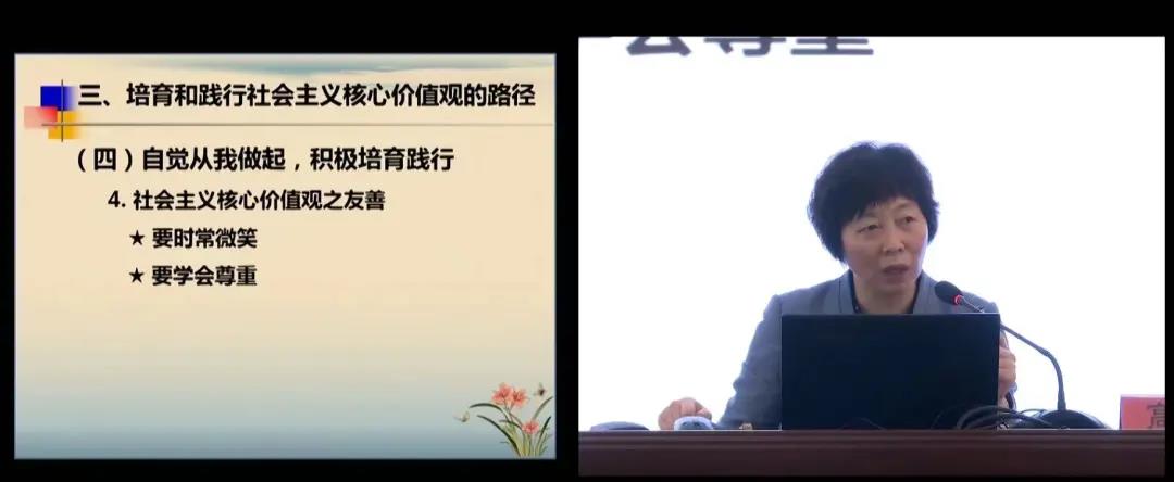 建设的重要性等方面为新发展对象开展作风建设讲解,她强调,发展对象及党员同学应时刻谨记党的三大优良作风理论联系实际、密切联系群众、批评与自我批评”,做到严于律己、以身作则,将党的优良作风与自身工作学习有机融合。朴林教授以“党章中对习近平新时代中国特色社会主义思想的阐述”为开端,详细讲解习近平新时代中国特色社会主义思想的时代背景、思想根源、内容梗概及鲜明特点,让培训学员深刻领会新时代中国特色社会主义思想是全党全国人民为实现中华民族伟大复兴而奋斗的行动指南。庚天琦老师从基层党建设的总体要求、党支部的主要工作两方面介绍了党支部建设的主要内容,她提到党支部建设并非是个人的事情,需要全体党员勠力同心,共谋发展。高原丽教授以简洁易懂的语言,生动的事例阐述了建设社会主义核心价值观,是解决我国社会转型期新问题和构建和谐社会的迫切需要,她深扣人心的话语激励着新发展对象同学不断向上,奋勇前行。