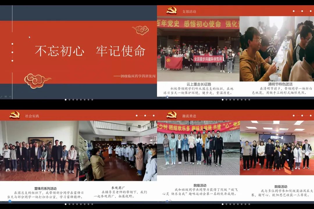 青年如朝日,青年兴则国家兴!药学院青年学子肩负着为祖国医药事业创新发展的时代重任,当锐意进取,敢于实践,爱国爱党,自强不息。祖国的未来需要青年一代来书写,民族的未来需要青年铸就。药学院青年将在党团组织的伟大感召下更加努力地学习和工作,将小我融入到历史坐标中,用党的百年历史和优良作风积蓄属于青年人的磅礴力量!