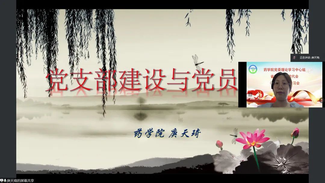 药学院党委副书记李霞教授,2017级辅导员庚天琦老师和2021级辅导员高莉莉老师分别以《党员作风建设与自我成长》《党支部建设与党员培养》《伟大的建党精神》为题开展专题讲座,每个讲座都与党员发展和思政教育联系紧密,并结合当下时政热点,使全体学员深受教育。