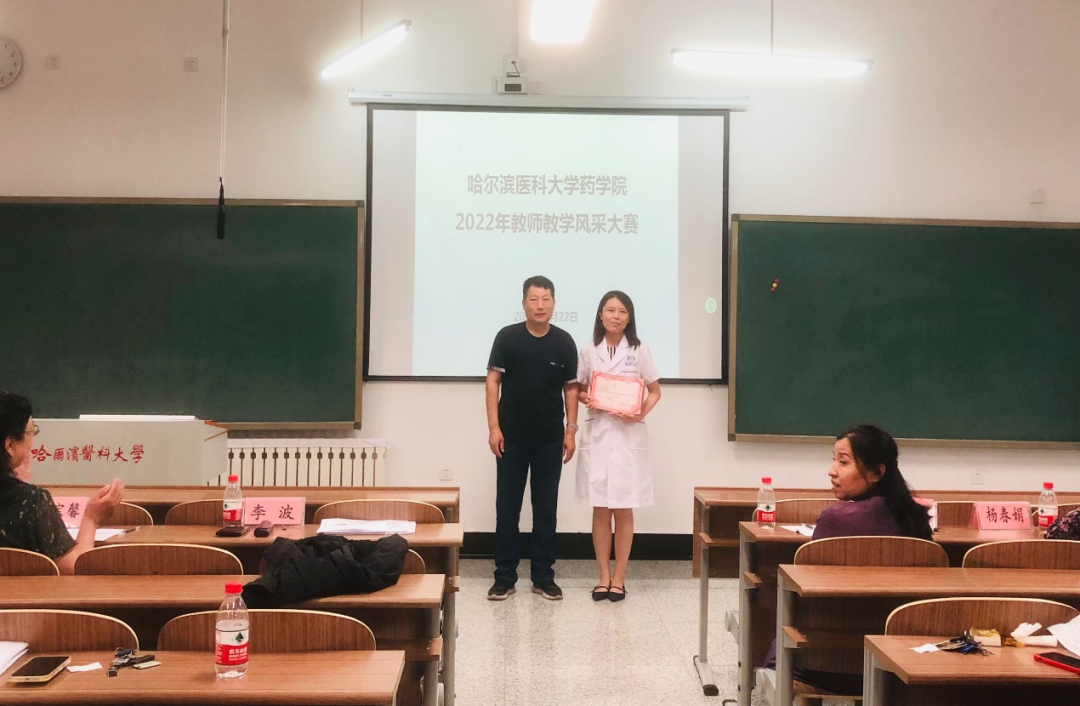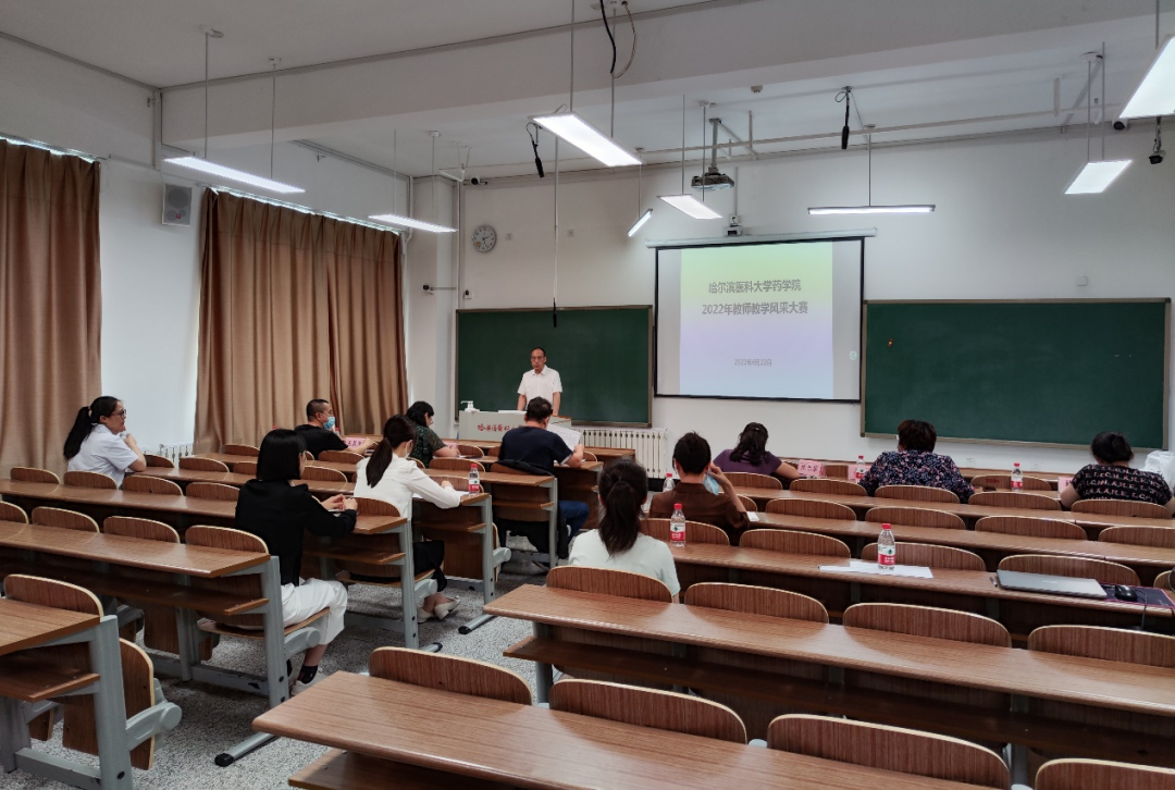为鼓励广大教师潜心教书育人,深入贯彻全国教育大会和新时代全国高等学校本科教育工作会议精神,促进教师教学能力的进一步提升,助力学校一流本科教育振兴,药学院于2022年6月22日14:30组织举办2022年教师教学风采大赛及全英文教学大赛,参赛教师分别为刘宇、包红霞、李畅、张婷、刘佳欣、焦磊,由教务科牵头选聘原则性强、办事公正、既懂业务又精通教学的骨干教师为评委,评委分别为校级督导李波教授,杨春娟教授、李宝馨教授、张乐华教授、王晨光教授及韩维娜教授。大赛由谢良军副院长主持,部分教师观摩本次大赛。