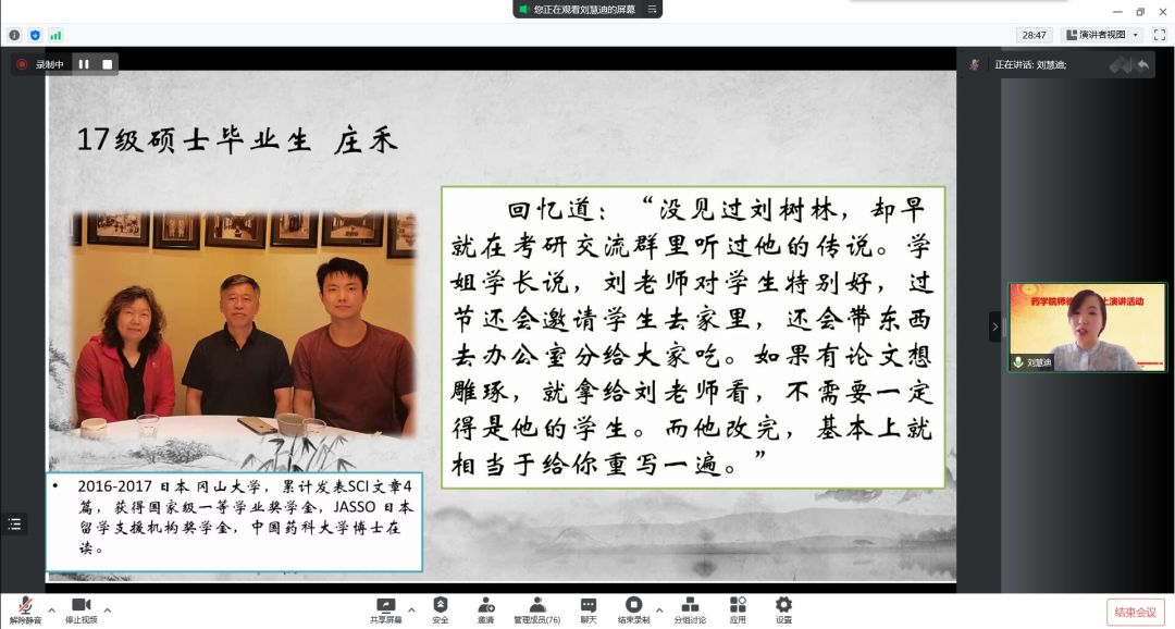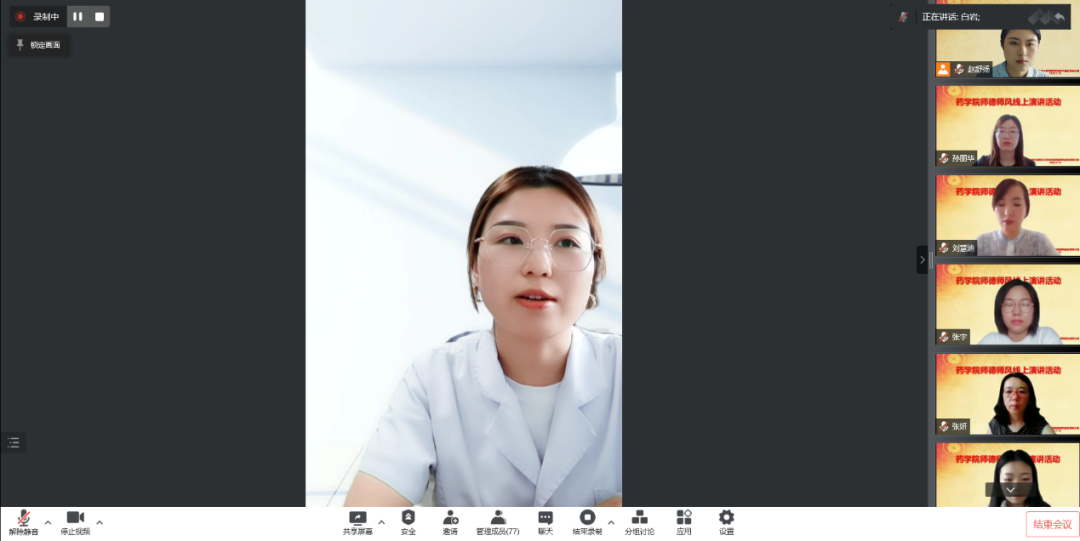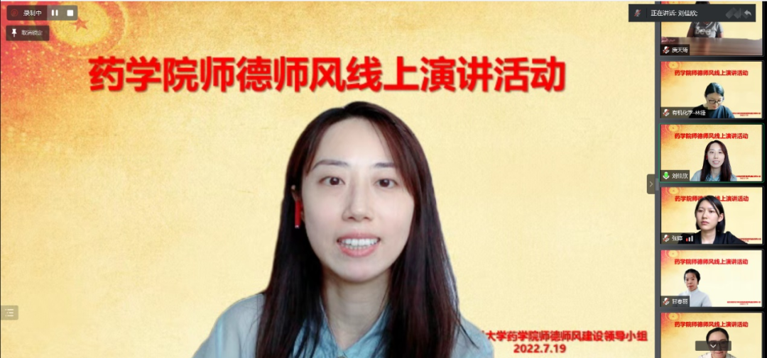 为提高教师的思想政治素质、树立正确的教师职业理想,进一步强化师德师风专项教育,7月19日下午,药学院举办师德师风线上演讲比赛,比赛由副院长谢良军主持,全院教师参加了本次活动。