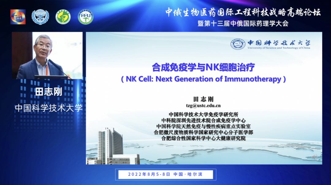 田志刚院士分享了“合成免疫学与NK细胞治疗”报告,田志刚院士指出合成免疫学是免疫系统重塑再造过程。提出NK细胞在针对肿瘤的先天免疫反应中发挥重要作用。NK 细胞的效应功能依赖于激活和抑制信号的整合。抑制某些 NK 细胞表面检查点受体已显示出逆转肿瘤微环境状态下NK细胞功能障碍和增强抗肿瘤免疫力的潜力,在肿瘤治疗领域具有广泛应用前景。