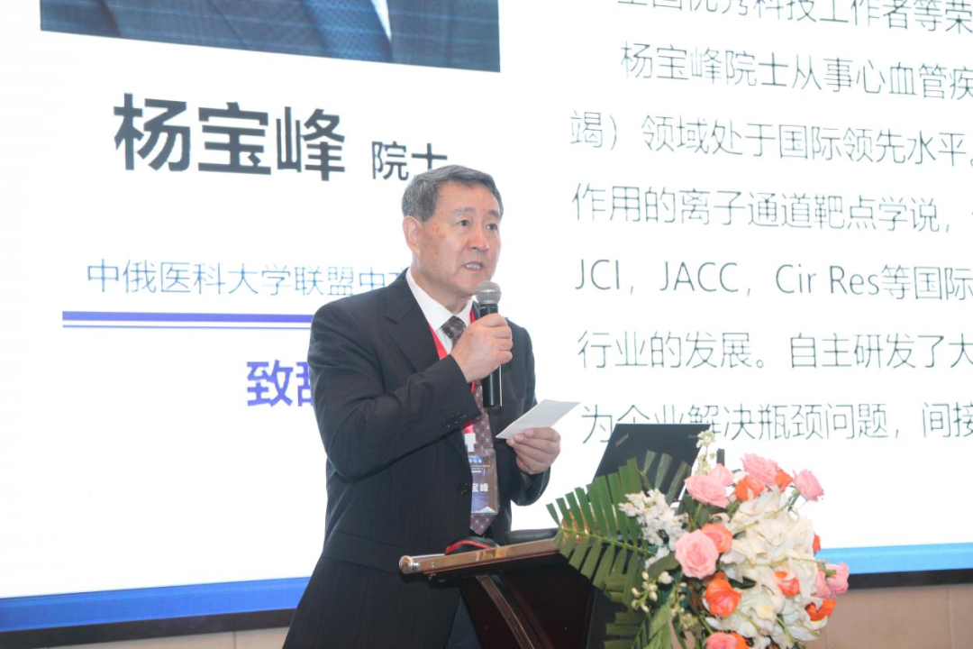 中俄医科大学联盟中方主席、中国工程院院士杨宝峰致辞指出:“生物医药作为中俄两国最具发展潜力的领域之一已达世界先进水平。我们应进一步深化在医药科技领域的合作,找准契合点,实现优势互补。本次会议旨在聚焦国际科技前沿,立足和服务于国家创新驱动发展战略,围绕如何充分发挥中俄医科大学联盟平台优势,深化中俄及国际各国在生物医药领域的交流与合作展开广泛研讨。”