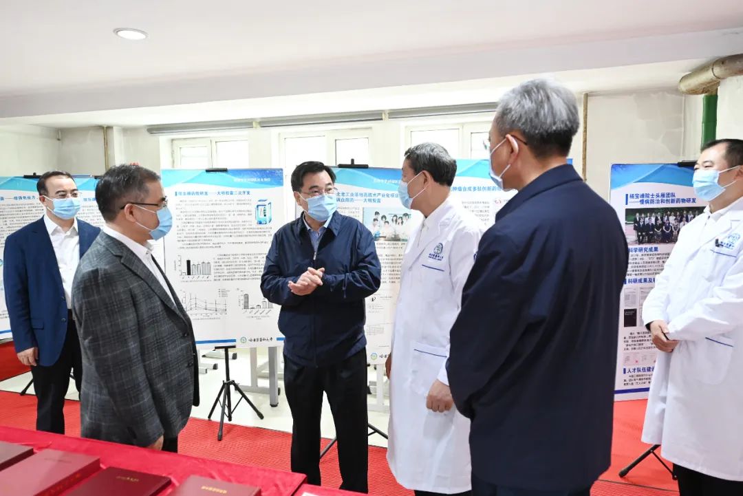 作为中国工程院院士、国家级教学名师,杨宝峰带领团队开展心脑血管系统疾病药物研究,取得了丰硕的教学和科研成果,获得了多项荣誉。胡昌升来到哈尔滨医科大学北方转化医学研究合作中心,看望慰问杨宝峰院士,与杨宝峰团队教师亲切交谈,参观展厅、实验室,了解科研成果转化、药物研发、教材编写等工作,对杨宝峰院士为教育和科研事业作出的突出贡献表示崇高敬意。胡昌升说,人类的文明进步离不开医学医药,大学的发展需要专家来支撑。杨宝峰院士在教学上辛勤耕耘,在科研上不断探索,脱颖而出,成为医学领域的“领头羊”,对哈医大发展起到了非常重要的作用。希望学校不断深化教育教学改革,培养更多、更高素质的新时代人才,创造更多引领国家发展的科技成果。