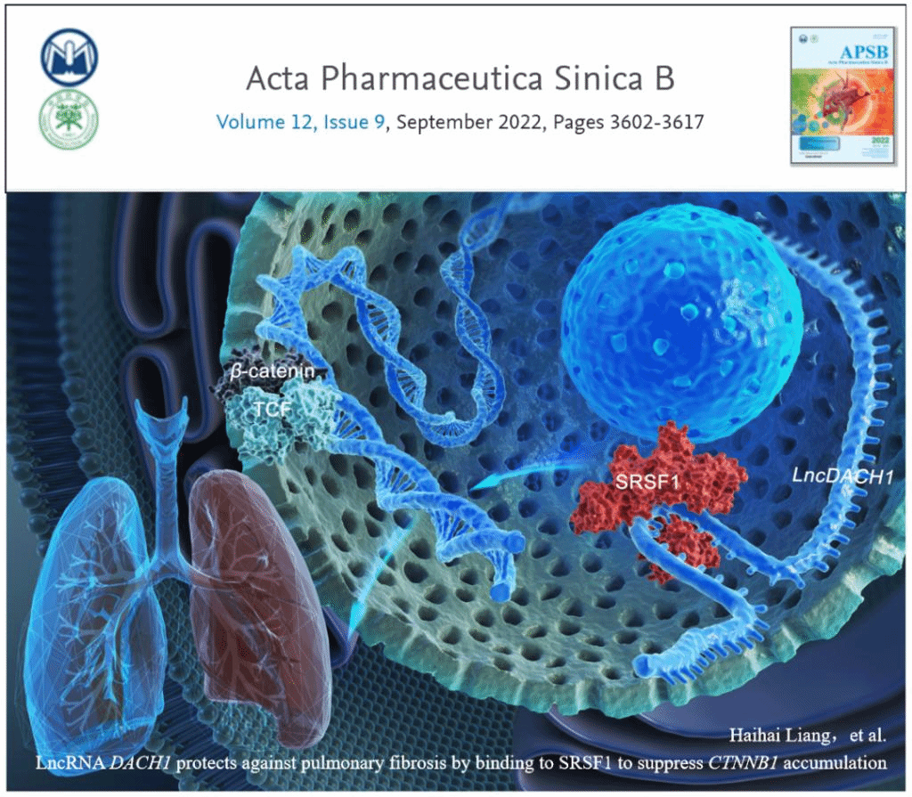 我院梁海海教授团队在特发性肺纤维化研究领域取得最新进展,研究成果《LncRNA DACH1 protects against pulmonary fibrosis by binding to SRSF1 to suppress CTNNB1 accumulation》以封底文章发表在我国领军期刊《Acta Pharmaceutica Sinica B》2022年9期(IF=14.903)。