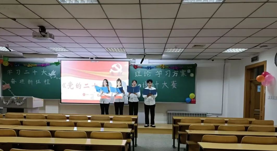 演讲环节中,各支队伍还穿插了精彩小节目,有朗诵,歌曲演唱,红色影视剧配音等,内容新颖,引人入胜,使理论学习进一步生动形象化、形式多样化,喜闻乐见化,引导全体学生更加深刻领会到党的二十大精神。
