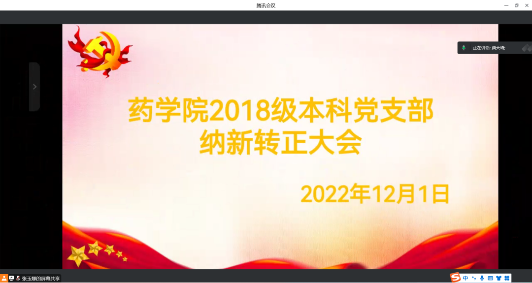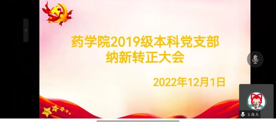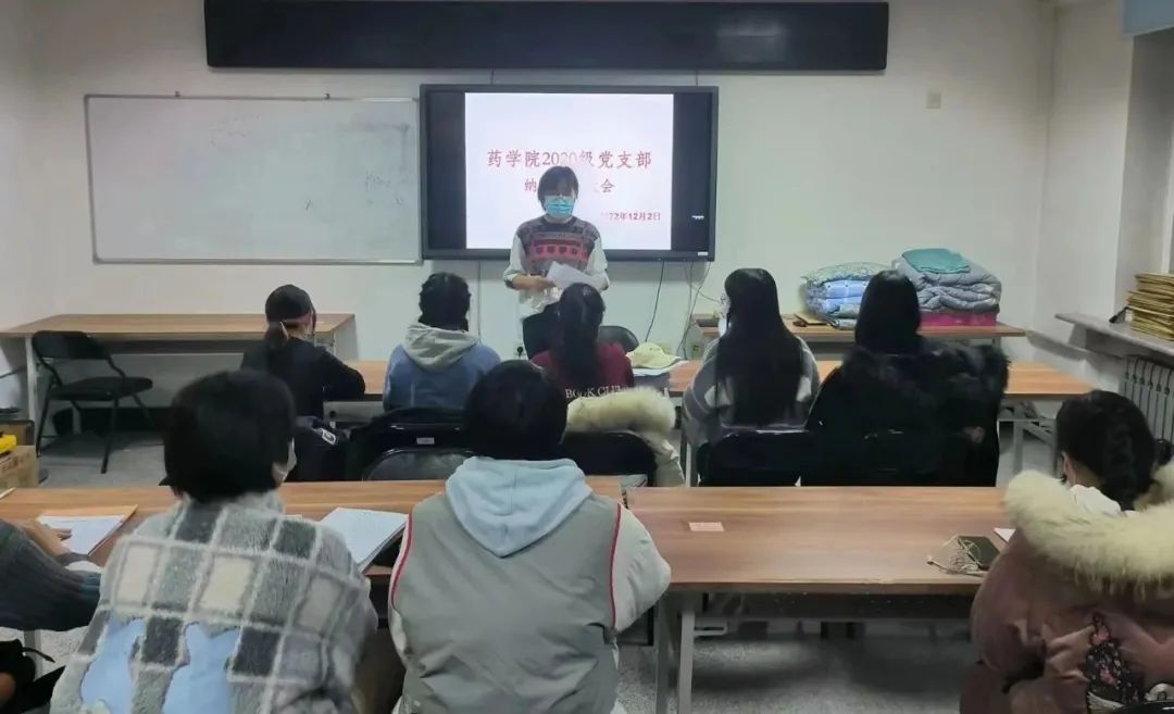药学院各年级党支部于12月1日在线上进行了18、19级的接收新党员及预备党员转正大会,于12月2日在713会议室召开了20级的接收新党员大会。会议分别由庚天琦、王国杰、梁亚男老师主持。本年级的所有党员出席大会,对各支部提交的梅婷等13名预备党员转正申请以及郭伯威等20名同志成为中共预备党员的材料进行了讨论研究,表决通过接收20名同学为中共预备党员,13名预备党员转为中共正式党员。