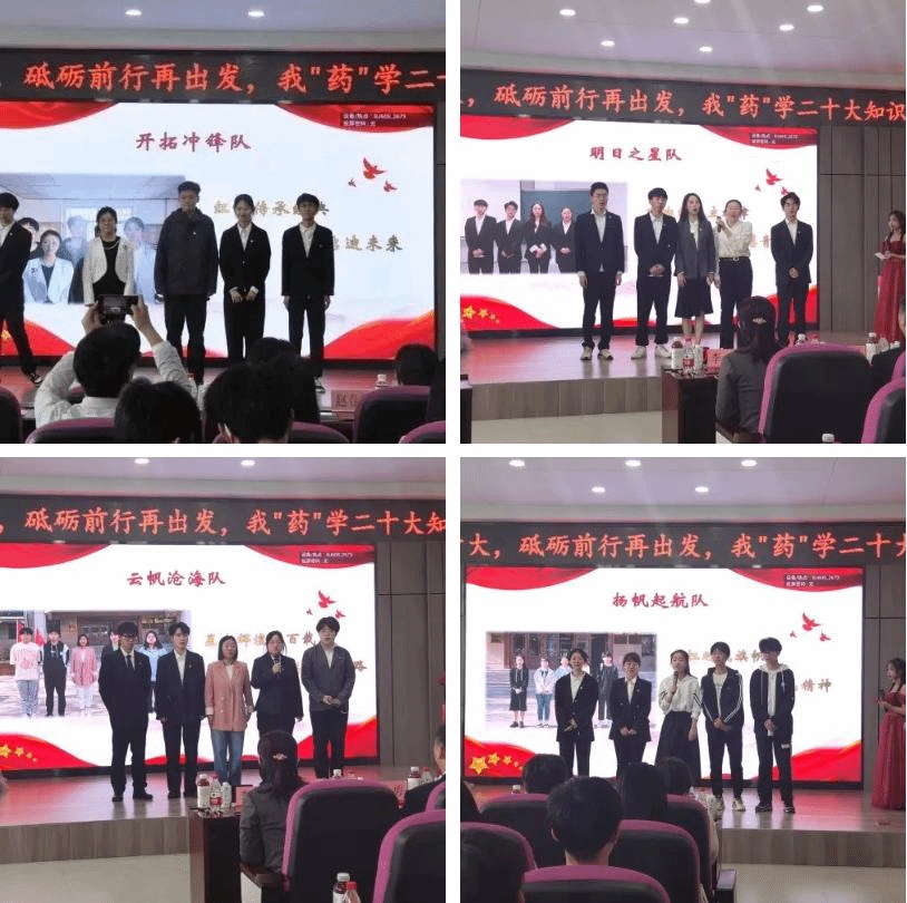经过各环节的激烈比拼,最终“开拓冲锋队”荣获一等奖,“云帆沧海队”荣获二等奖,“扬帆起航队”和“明日之星队”荣获三等奖,22级临药四班陆然然同学获得优秀宣讲员奖,“扬帆起航队”荣获团队风采奖。