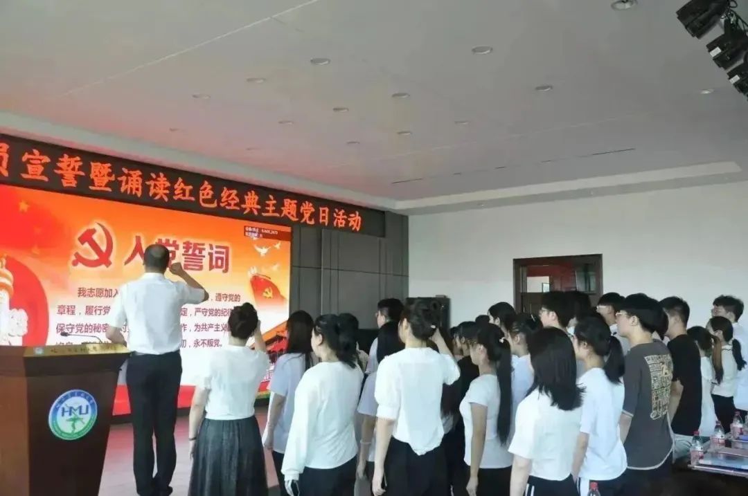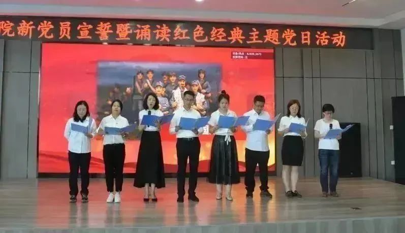 会议开始,全体师生齐唱国歌,庄严雄壮的旋律铿锵有力,令人振奋。副院长谢良军宣读参加宣誓新党员名单后,39名新党员在姜大巍同志的带领下庄严宣誓,老党员重温入党誓词,全体党员再一次在鲜红的党旗下升华了思想,洗礼了心灵。