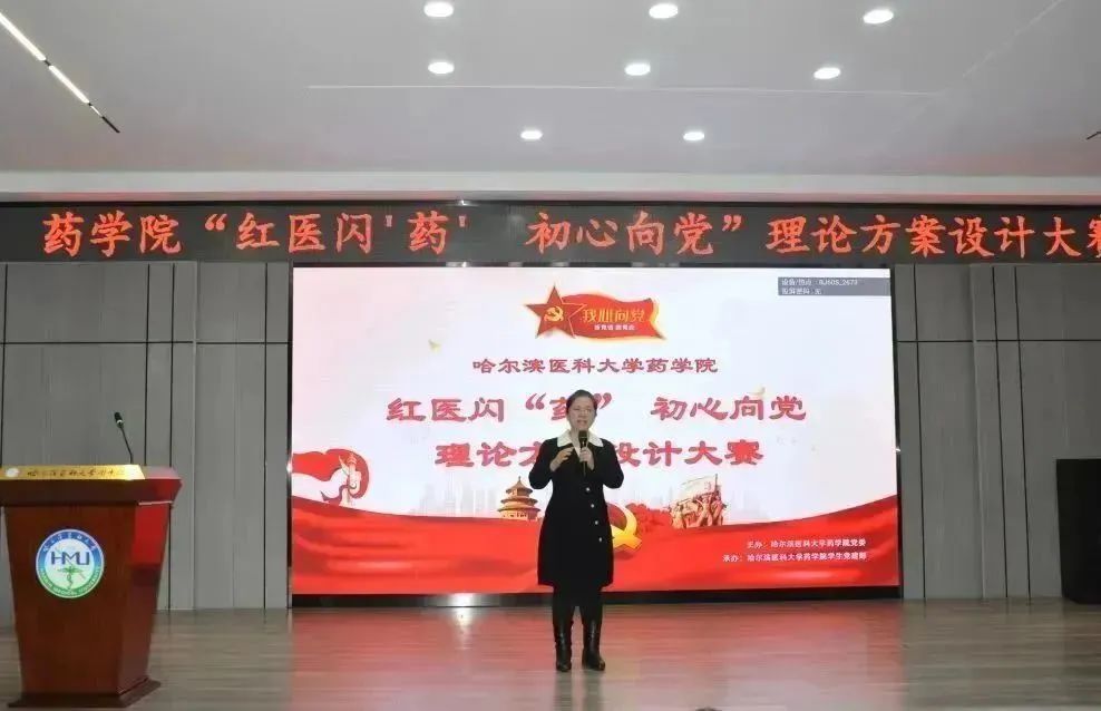 药学院党委副书记李霞对活动进行点评。李霞副书记充分肯定参赛选手的精彩表现,她引导同学们要学思践悟、知行合一,要将自身所学融入国家建设,融入东北振兴,融入医药发展。她给全体同学提出三点希望:一是希望同学们立鸿鹄志,做奋斗者,要做胸怀梦想、踏实肯干的有志青年;二是希望同学们认真学习文化知识,用扎实的专业功底勇担祖国卫生医药使命,创造崭新未来;三是希望同学们以校院为家,爱党爱校,笃信好学,励精图强,早日用自身所学成就一番事业,为哈医大药学院增光添彩。