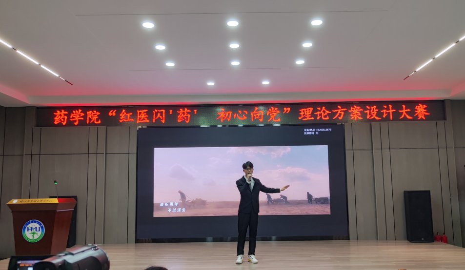 生逢其时,奋斗其时。为弘扬爱国主义精神,传承红色家书革命精髓,推动党的二十大精神入脑入心,11月29日晚上,药学院党委在在学校星联学术报告厅举办第十二届“理论方案设计大赛”,带领全体师生重温红色历史记忆,学习伟大建党精神。学院党委副书记李霞、副处级辅导员兼学生党总支书记、机关党支部书记姜大巍、理化党支部书记吴延丽、药化联合党支部书记甘春丽、药理党支部刘鑫出席比赛并担任评委嘉宾,兼职班主任、全体研究生、本科生辅导员老师以及学生代表近300余人现场参会,本次比赛由学生会党建部、文艺部承办。