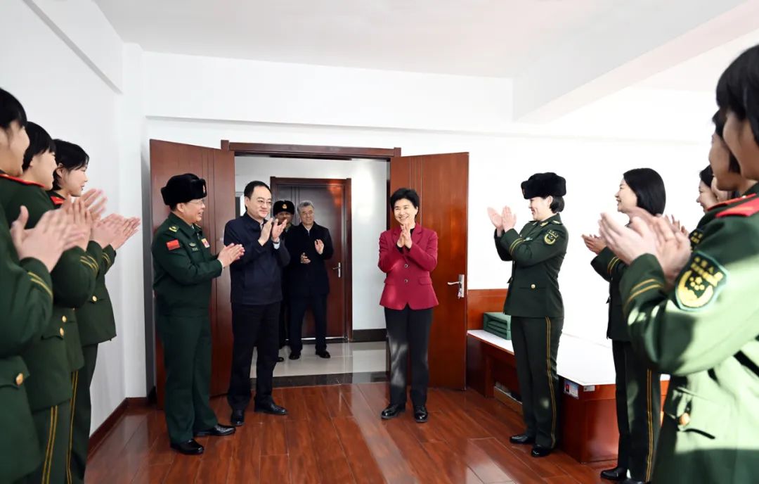 梁惠玲来到武警黑龙江省总队,参观通信大队荣誉墙,看望慰问电话班的女兵,询问日常训练和生活情况,希望武警官兵在部队这个“大熔炉”,丰富知识、开阔视野,掌握更多新技术,锻炼意志品质,苦练过硬本领,不断提高综合素质能力。