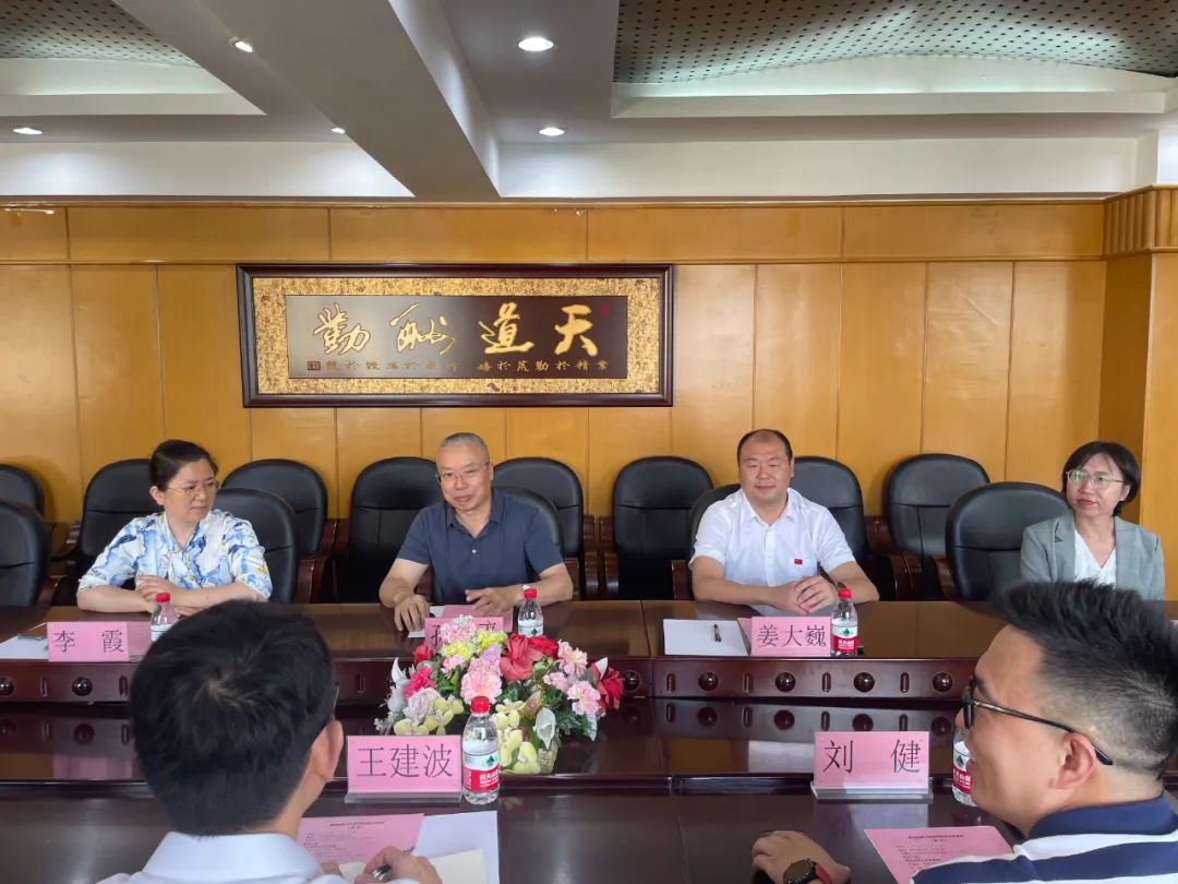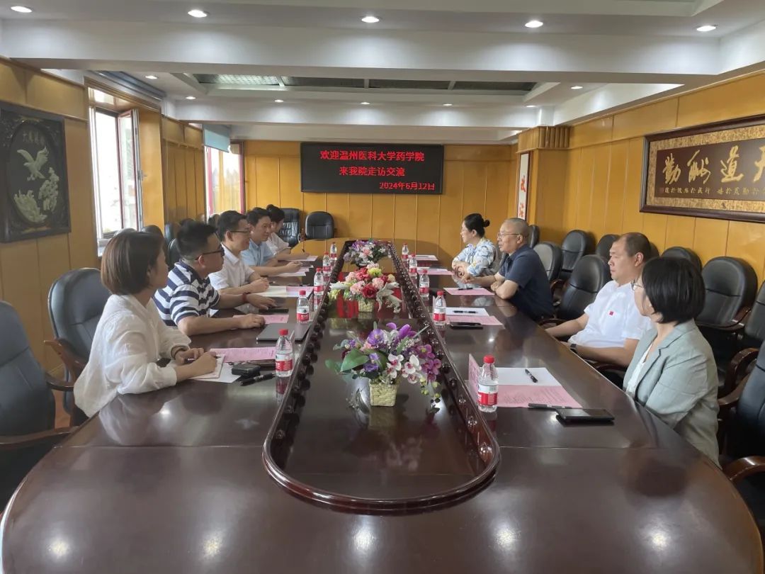 为进一步加强校际交流合作,6月12日下午,温州医科大学药学院党委书记王建波、党委副书记、纪委书记刘健等一行到我院交流走访,学院党委书记孙建平、党委副书记李霞等对温州医科大学药学院一行表示亲切问候和热烈欢迎,双方在我院七楼会议室展开座谈,就党建工作发展思路和美好愿景展开深入交流。