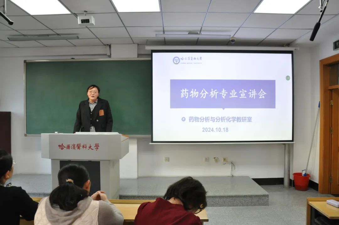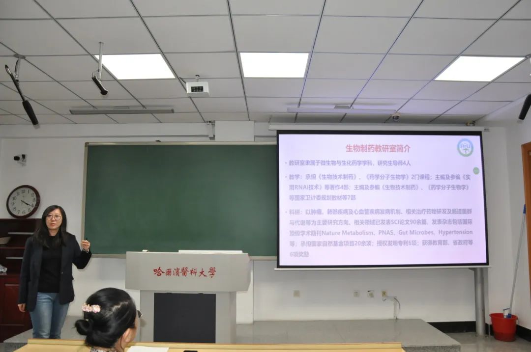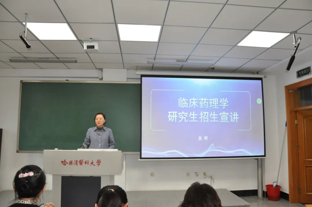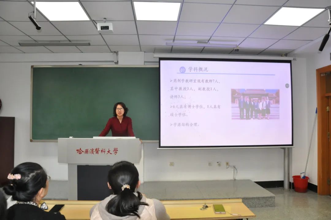 药理教研室陈畅教授、药化教研室韩维娜教授、药分教研室杨春娟教授、药剂教研室唐景玲教授、临床药学教研室袁野教授、生物制药教研室王爽副教授、基因组中心刘慧迪副教授7名优秀学科专家分别讲解了不同专业的学科概况、实验室条件、科研方向、科研转化成果以及毕业生去向等内容。讲座内容丰富多彩、深入浅出、富有感染力,老师叮嘱同学们从事科学研究要拓宽视野,从兴趣出发;要明晰就业去向与发展前景,立鸿鹄志,做奋斗者;要珍视母校读研机会,欢迎全体同学积极报考本校研究生,促进母校一流学科建设,助力龙江发展。