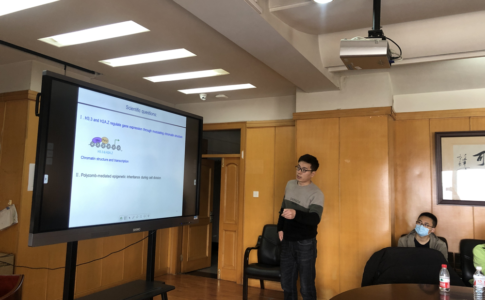 最后,赵吉成副研究员给大家讲解了表观遗传的调节因子—多梳抑制性复合物,H3K27me3和H2Aub1在全基因组范围内形成宽域且正反馈模型有助于H3K27me3的遗传,H1-TKO影响H2Aub1在mESCs中的增殖及细胞分裂过程中H2Aub1的表观遗传。