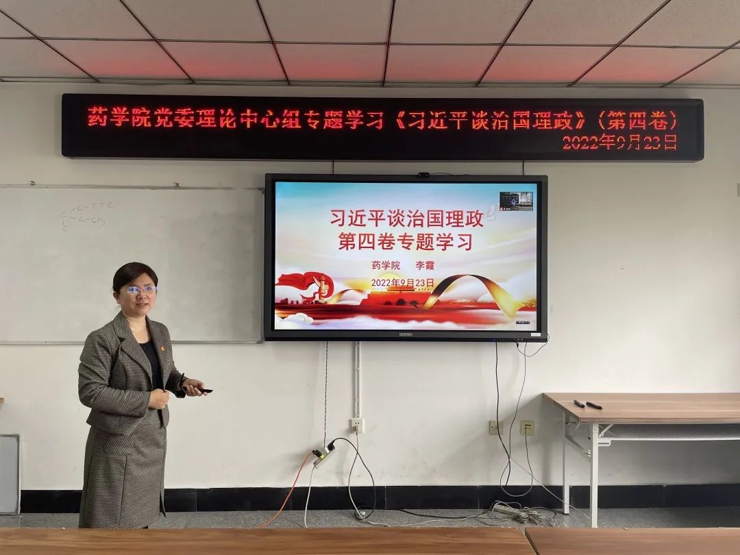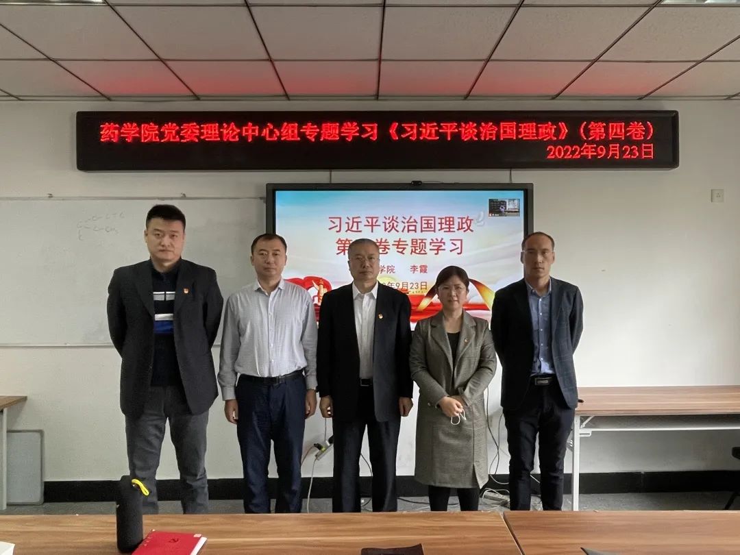 感悟思想伟力,汲取真理力量。为扎实提高学院党员干部对《习近平谈治国理政》第四卷的理解力和和感悟力,号召广大党员干部学原文、悟原理、谈心得,以理论指导实践,9月23日上午,药学院党委召开理论中心组专题学习(扩大)会,深入学习《习近平谈治国理政》第四卷内容,党委书记孙建平、院长张勇、领导班子其他成员及机关全体参会学习。学院副院长、机关党支部书记谢良军主持学习会。